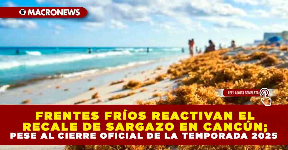 Redacción Macronews.- Aunque la temporada de sargazo 2025 se daba por concluida, los recientes frentes fríos en el Caribe mexicano han provocado un nuevo recale de macroalgas en las costas de Cancún, especialmente en las playas del Niño y Las Perlas. De acuerdo con José Antonio de la Torre Chambé, director de Servicios Públicos municipales, el fenómeno fue reactivado por vientos del norte y oleaje elevado, lo que sorprendió a autoridades y prestadores turísticos.
