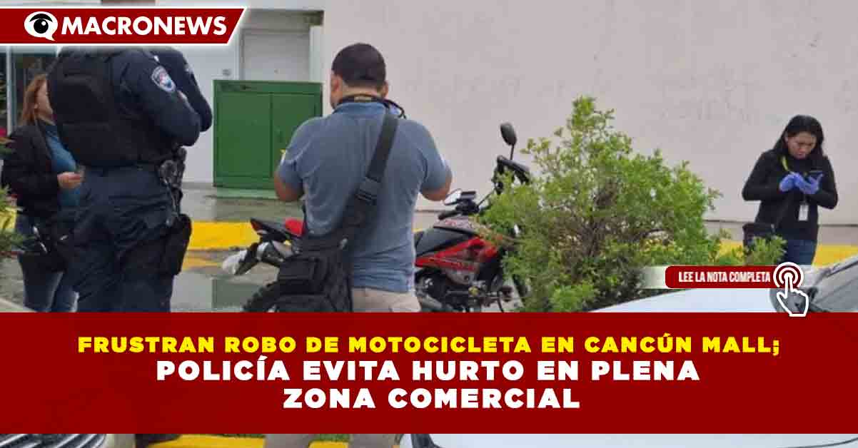 Redacción Macronews.- Un intento de robo de motocicleta fue frustrado este jueves en Cancún Mall, gracias a la rápida intervención de elementos de seguridad, evitando que el delito se consumara en una de las zonas comerciales con mayor afluencia de personas en la ciudad.