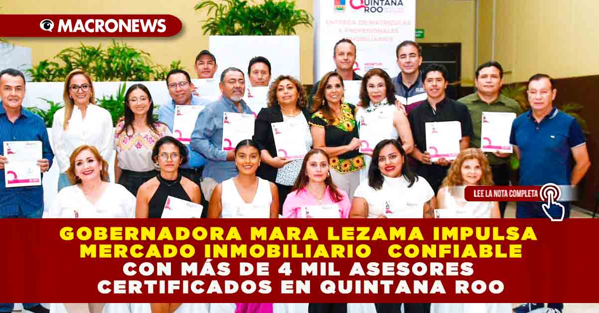 IMPULSA LA GOBERNADORA MARA LEZAMA MERCADO INMOBILIARIO CONFIABLE CON MÁS DE 4 MIL ASESORES CERTIFICADOS EN QUINTANA ROO