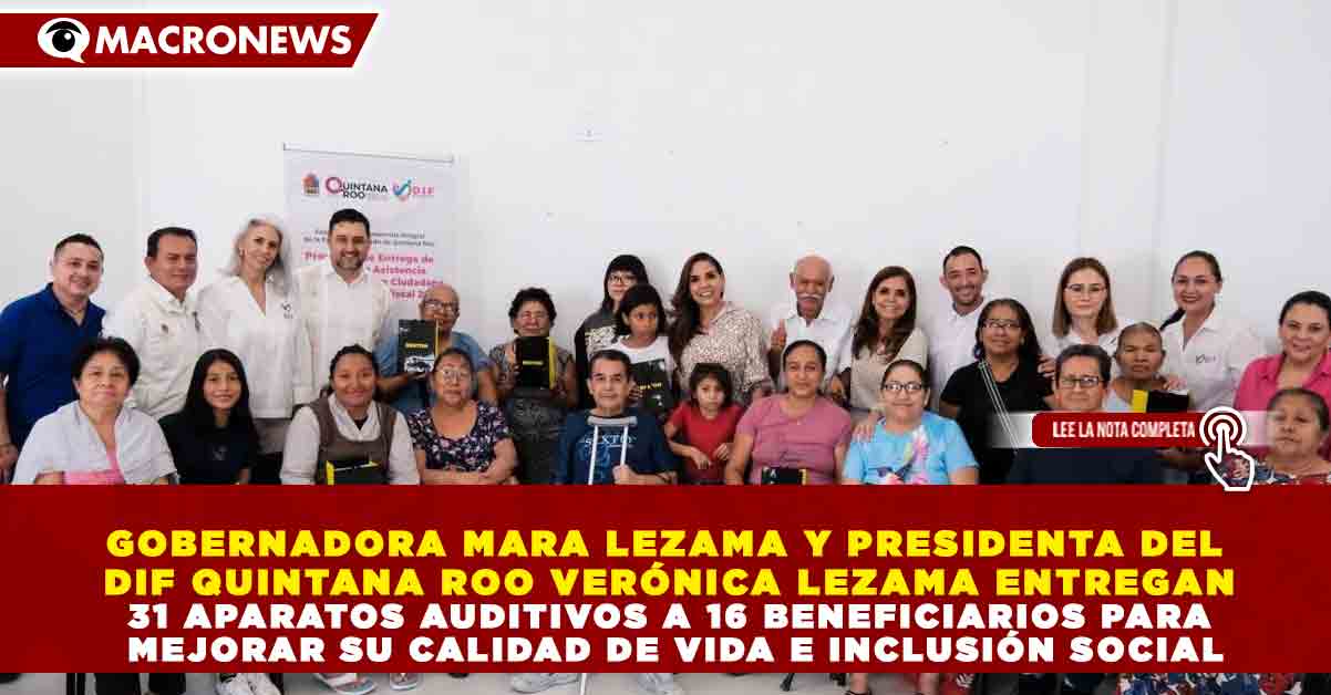 Redacción Macronews.- La gobernadora de Quintana Roo, Mara Lezama Espinosa, encabezó la entrega de 31 aparatos auditivos a 16 beneficiarias y beneficiarios, como parte de una estrategia de inclusión social que busca mejorar la calidad de vida de personas con discapacidad auditiva en la entidad.