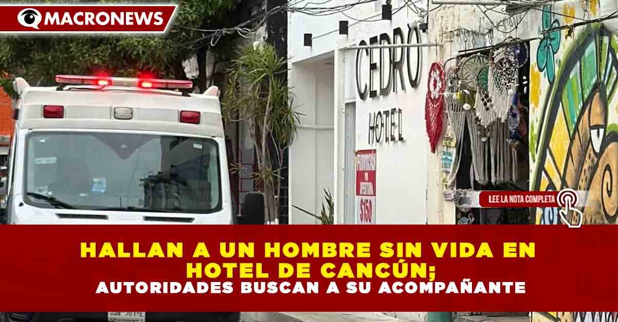 Redacción Macronews.- Un hombre fue encontrado sin vida al interior de una habitación de hotel en Cancún, lo que activó un operativo de seguridad para ubicar a la persona que presuntamente lo acompañaba antes de los hechos.