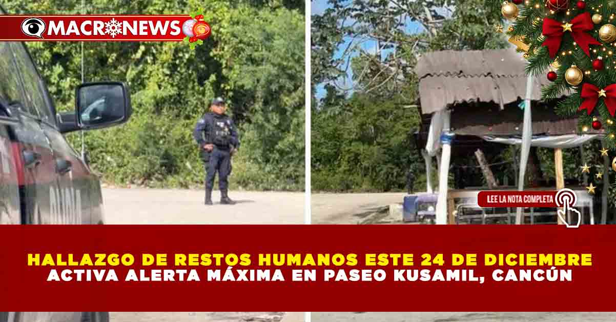 Redacción Macronews.- Durante las primeras horas de este miércoles 24 de diciembre, autoridades de los tres niveles de gobierno atendieron el reporte del hallazgo de restos humanos en un área verde del fraccionamiento Paseo Kusamil, en Cancún, situación que activó los protocolos de máxima alerta y una intensa movilización policial.