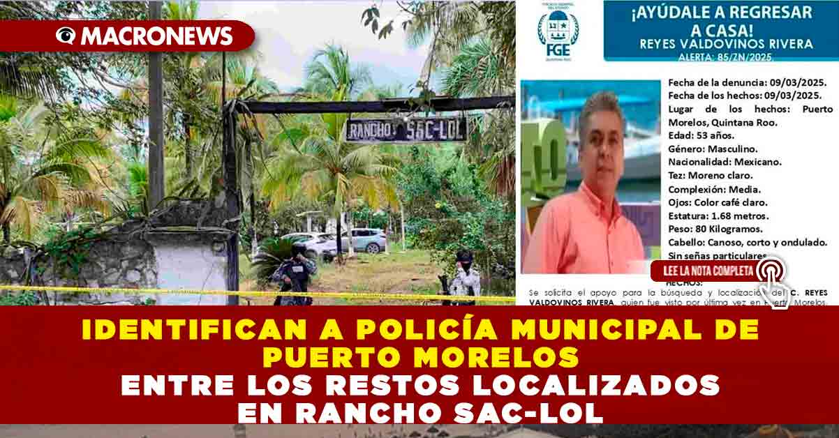 Redacción Macronews.- Autoridades estatales confirmaron que uno de los cuerpos encontrados en el rancho Sac-Lol, ubicado en la zona rural de Puerto Morelos, corresponde a un elemento activo de la Policía Municipal, lo que ha generado conmoción e indignación entre los integrantes de la corporación y la comunidad local. El hallazgo se realizó durante un operativo de investigación tras el reporte de varios cuerpos abandonados en el área.