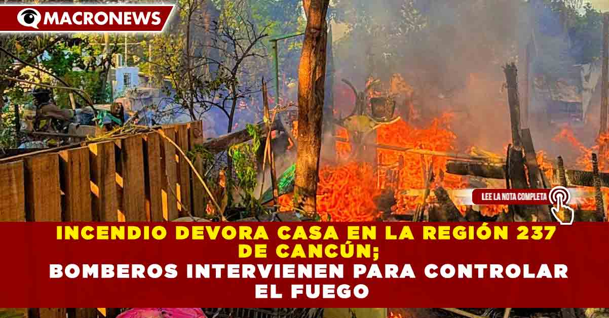 Redacción Macronews.- Un incendio de gran magnitud consumió por completo una vivienda en la Región 237 de Cancún, dejando pérdidas totales en la estructura y afectando pertenencias de los residentes, reportaron autoridades locales la tarde de este lunes.