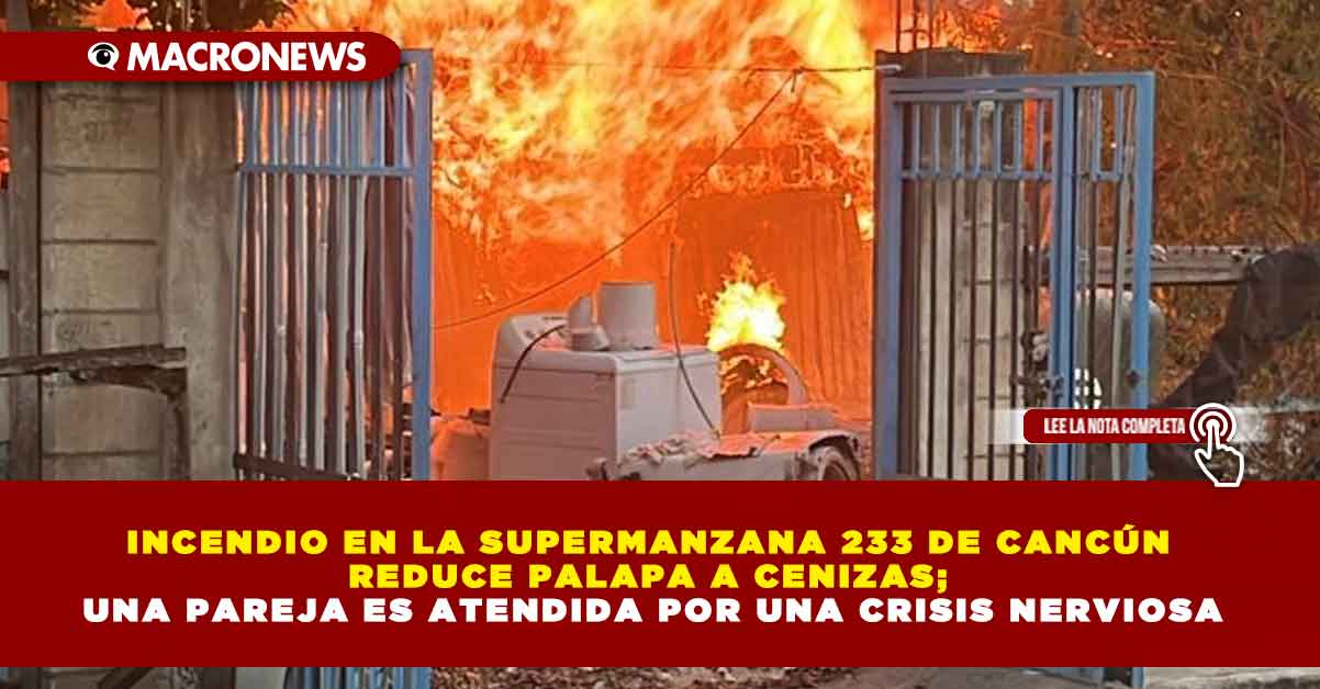INCENDIO EN LA SUPERMANZANA 233 DE CANCÚN REDUCE PALAPA A CENIZAS; UNA PAREJA ES ATENDIDA POR UNA CRISIS NERVIOSA