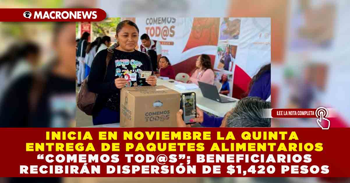 INICIA EN NOVIEMBRE LA QUINTA ENTREGA DE PAQUETES ALIMENTARIOS “COMEMOS TOD@S”; BENEFICIARIOS RECIBIRÁN DISPERSIÓN DE $1,420 PESOS