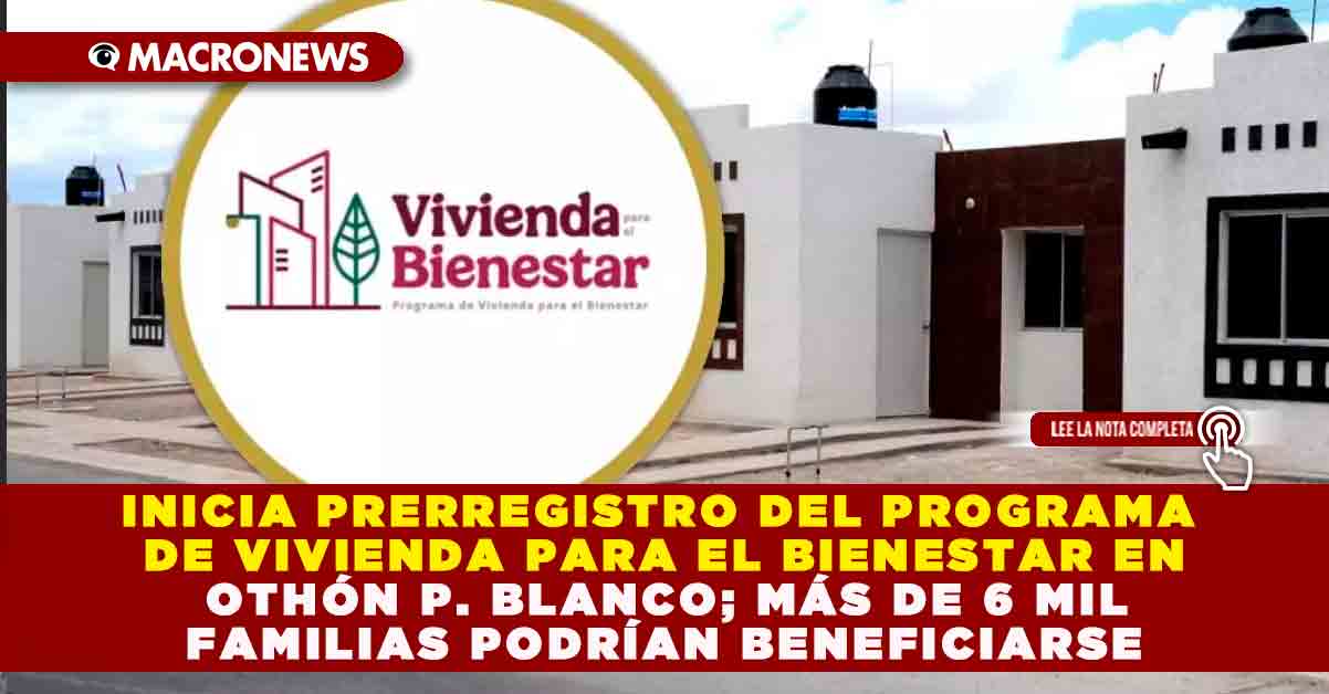 Redacción Macronews.- Del 10 al 15 de noviembre de 2025, se lleva a cabo el prerregistro del Programa de Vivienda para el Bienestar en el municipio de Othón P. Blanco, con sede en la Casa Ejidal de Calderitas, en horario de 9:00 a.m. a 4:00 p.m.. El proceso se realiza conforme al orden alfabético del primer apellido, y busca atender a miles de familias que aspiran a mejorar sus condiciones habitacionales.