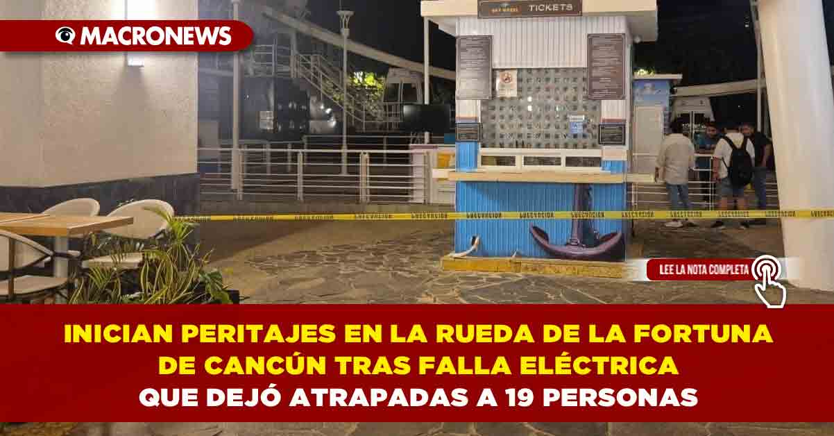 Un apagón ocurrido la noche del 18 de agosto dejó atrapadas a 19 personas en la Rueda de la Fortuna, ubicada en la zona hotelera de Cancún. Autoridades de Protección Civil informaron que ya se realizan peritajes eléctricos para determinar las causas del incidente.