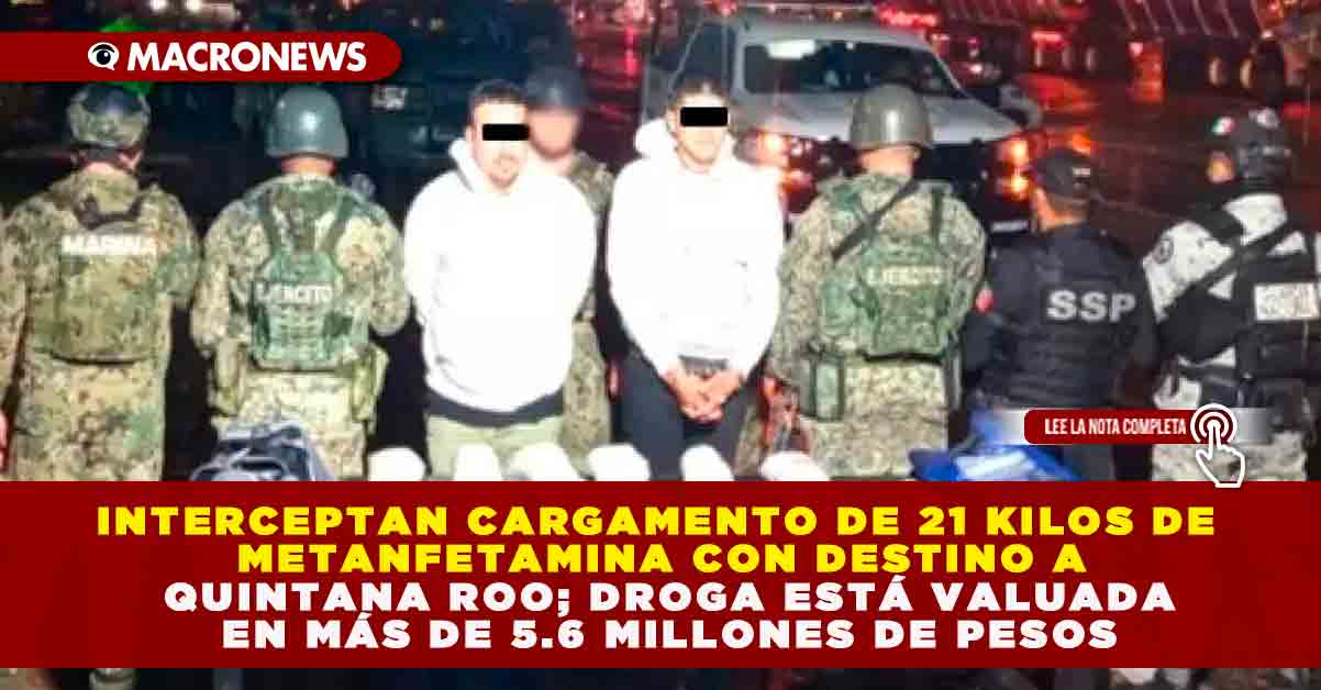 Interceptan cargamento de 21 kilos de metanfetamina con destino a Quintana Roo; droga está valuada en más de 5.6 millones de pesos