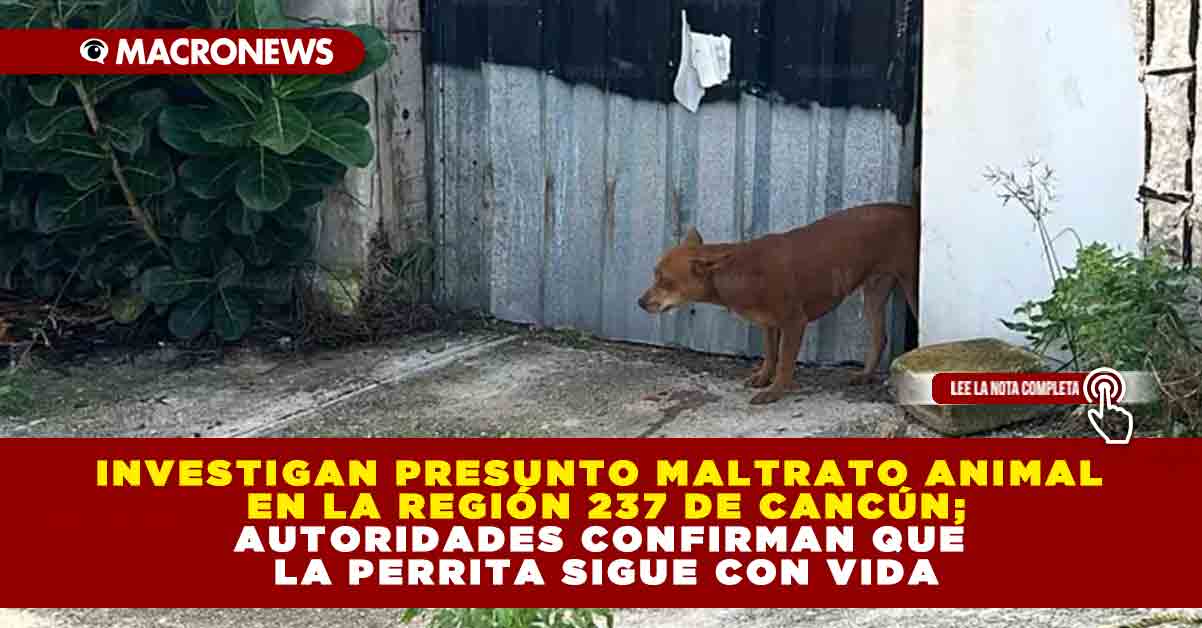 n presunto caso de maltrato animal en la Región 237 de Cancún generó indignación entre los vecinos, luego de que se reportara que un hombre habría atacado a una perrita dentro de su domicilio. Sin embargo, las autoridades confirmaron que el animal sigue con vida, y que hasta el momento no se ha comprobado la versión de un abuso sexual ni que haya sido macheteada hasta morir, como se difundió inicialmente entre los habitantes.