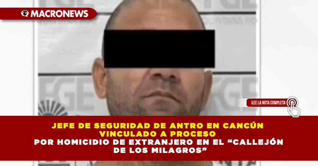 El jefe de seguridad de un centro nocturno ubicado en la zona hotelera de Cancún fue vinculado a proceso tras ser señalado como el principal responsable del homicidio de un ciudadano extranjero, ocurrido al interior del establecimiento en el área conocida como el “Callejón de los Milagros”, sobre el bulevar Kukulcán.