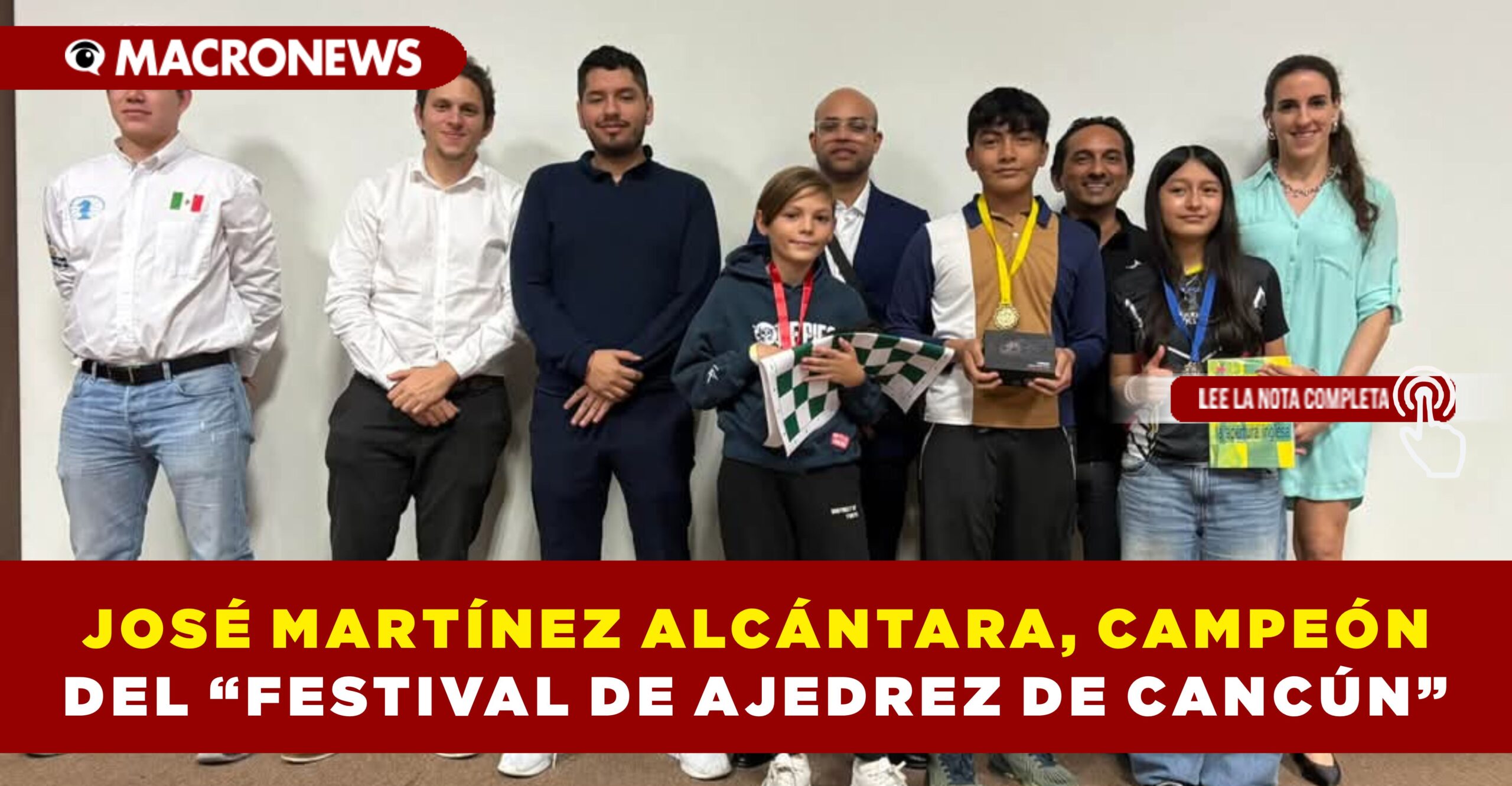 CANCUN, Q. ROO, 23 de diciembre.- El Gran Maestro José Eduardo Martínez Alcántara brilló en el Festival de Ajedrez de Cancún, llevándose el título de la categoría Magistral con una sobresaliente actuación al sumar 11 puntos de los 12 posibles. El evento, realizado en el Planetario Ka’Yok’, fue respaldado por la Federación Nacional de Ajedrez de México y el programa de alto rendimiento México Chess Talent.