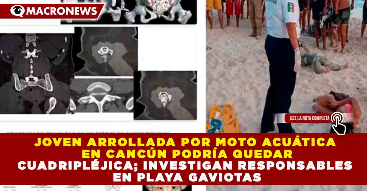 JOVEN ARROLLADA POR MOTO ACUÁTICA EN CANCÚN PODRÍA QUEDAR CUADRIPLÉJICA; INVESTIGAN RESPONSABLES EN PLAYA GAVIOTAS
