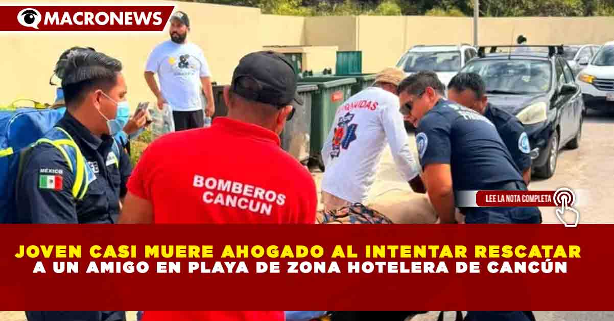 Redacción Macronews.- Un joven estuvo a punto de perder la vida al intentar rescatar a un amigo que se encontraba en peligro en el mar, en una playa de la Zona Hotelera de Cancún, lo que generó la movilización de cuerpos de emergencia.