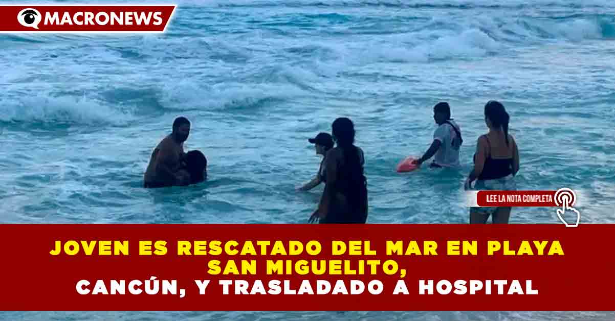 Redacción Macronews.- Un operativo de auxilio se registró en la Zona Hotelera de Cancún luego de que un joven fuera rescatado del mar en Playa San Miguelito y trasladado a un hospital tras presentar una emergencia mientras nadaba en el Caribe mexicano.