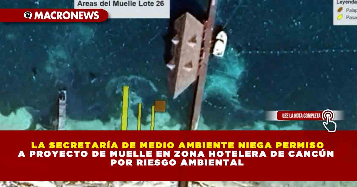 La Secretaría de Medio Ambiente y Recursos Naturales (Semarnat) negó la autorización ambiental al proyecto “Muelle Lote 26”, que buscaba construirse en el kilómetro 7.5 del bulevar Kukulcán, en plena zona hotelera de Cancún.