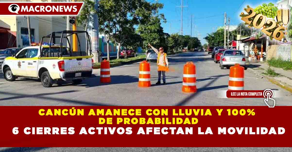 Redacción Macronews.- Este martes 13 de enero, las lluvias registradas en Cancún, combinadas con al menos seis cierres viales por obras de infraestructura, han generado tráfico lento y complicaciones en la movilidad en distintos puntos estratégicos de la ciudad, principalmente durante las horas pico.
