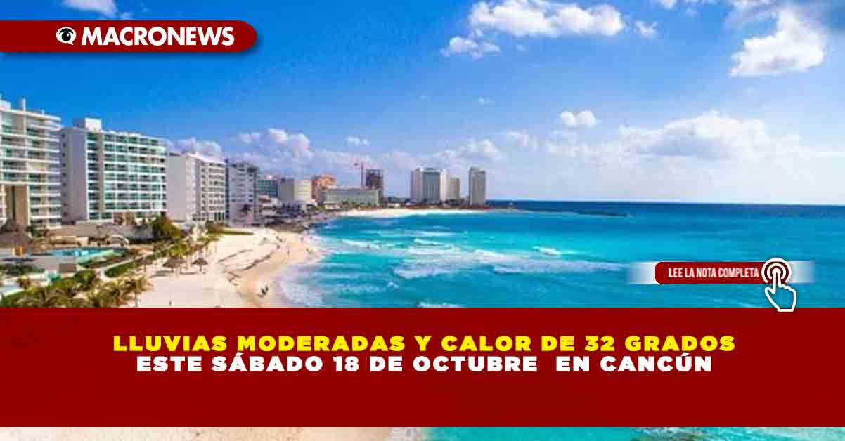 LLUVIAS MODERADAS Y CALOR DE 32 GRADOS ESTE SÁBADO 18 DE OCTUBRE  EN CANCÚN