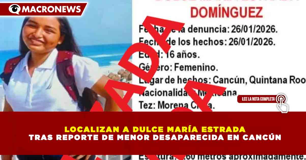 Autoridades de Quintana Roo confirmaron la localización con vida de Dulce María Estrada, luego de que se activara un reporte por la desaparición de dos menores en Cancún, situación que generó alerta entre familiares y cuerpos de seguridad.
