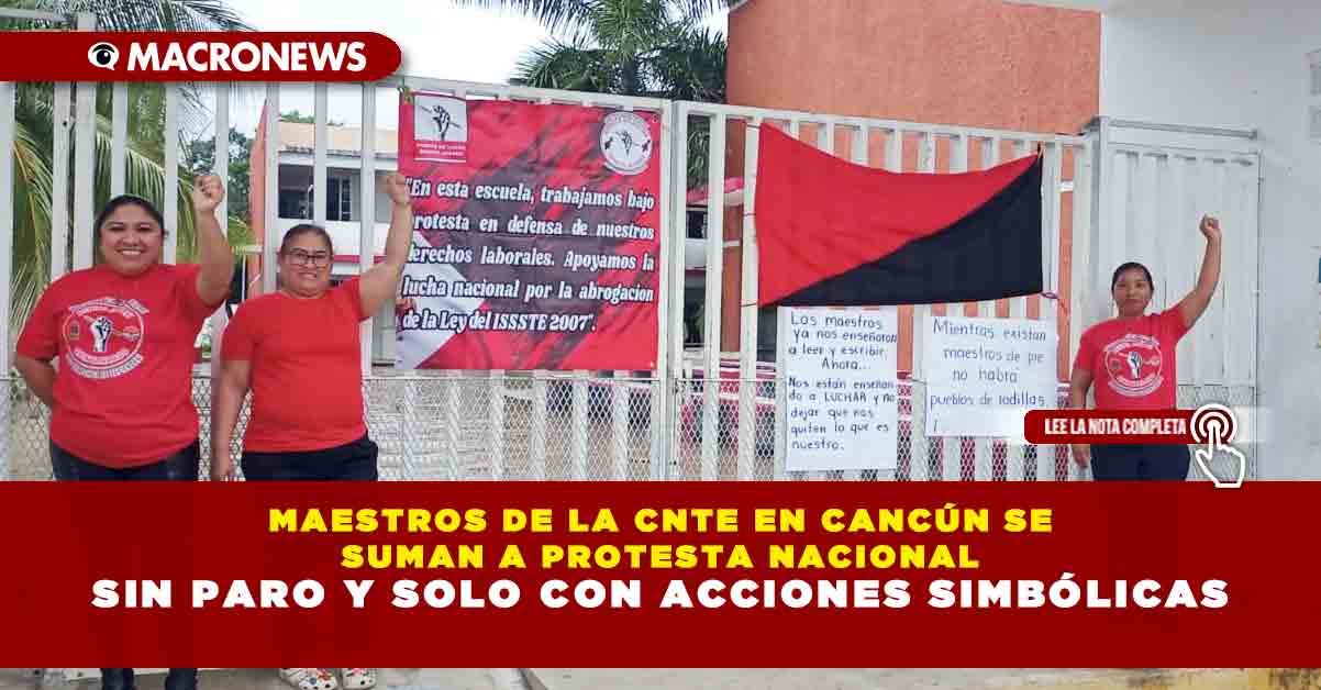 Desde Cancún los integrantes de la Coordinadora Nacional de Trabajadores de la Educación (CNTE) también se sumaron a la protesta nacional de maestros; sin embargo, lo hicieron únicamente con la colocación de banderas afuera de algunos planteles escolares y vestimenta roja.