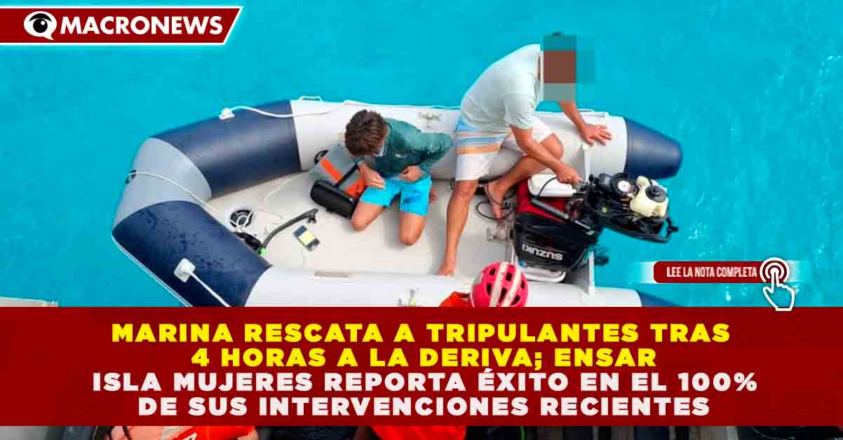 MARINA RESCATA A TRIPULANTES TRAS 4 HORAS A LA DERIVA; ENSAR ISLA MUJERES REPORTA ÉXITO EN EL 100% DE SUS INTERVENCIONES RECIENTES