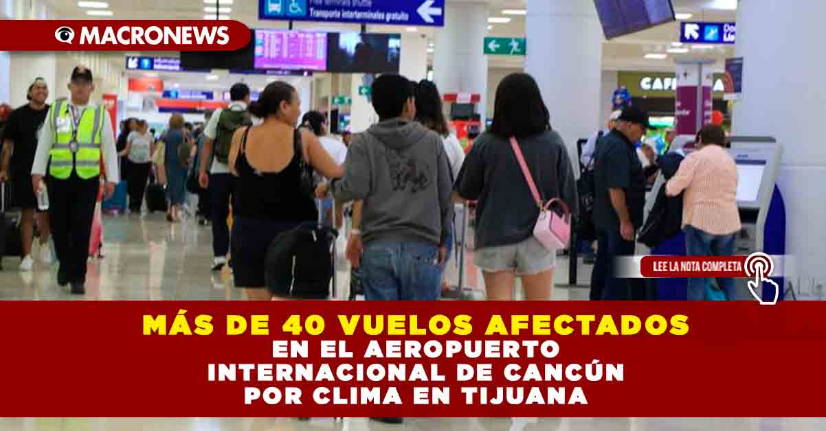 Redacción Macronews por Renan Moguel.- Debido a las afectaciones climatológicas que se presentan en Tijuana, alrededor de 42 operaciones se han visto afectadas desde y hacia el Aeropuerto Internacional de Cancún.