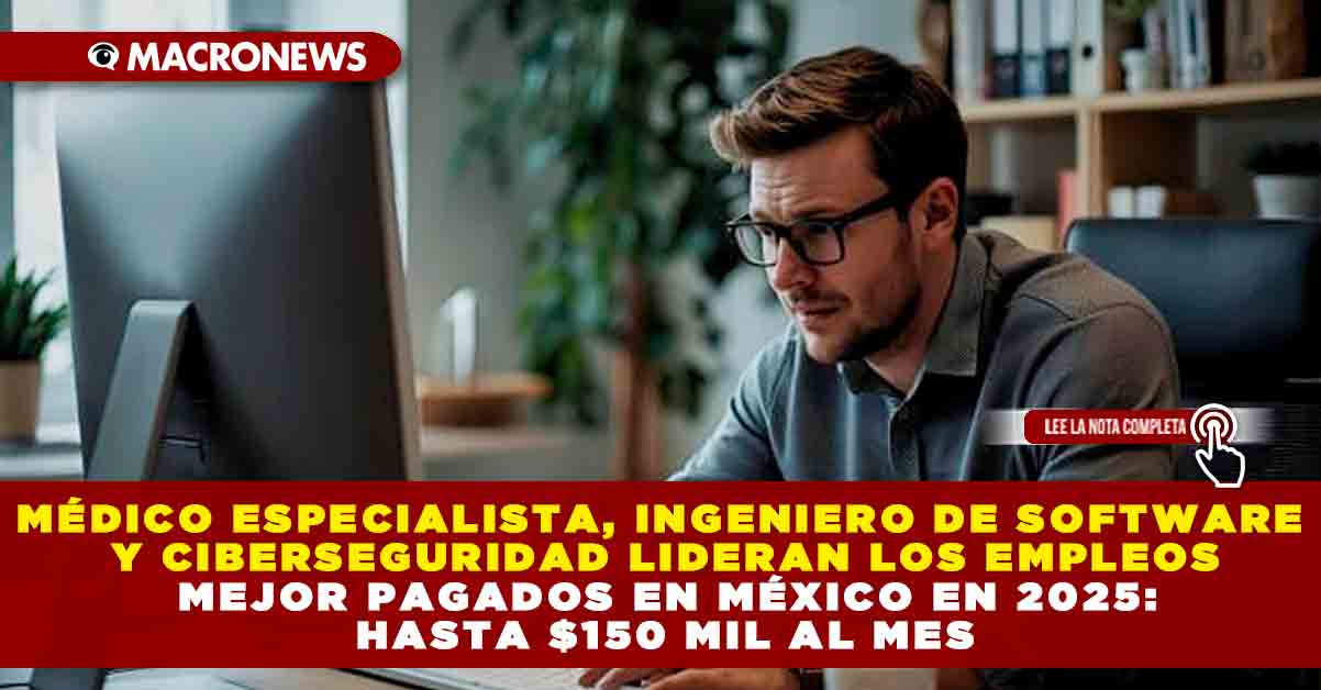 Médico especialista, ingeniero de software y ciberseguridad lideran los empleos mejor pagados en México en 2025: hasta $150 mil al mes