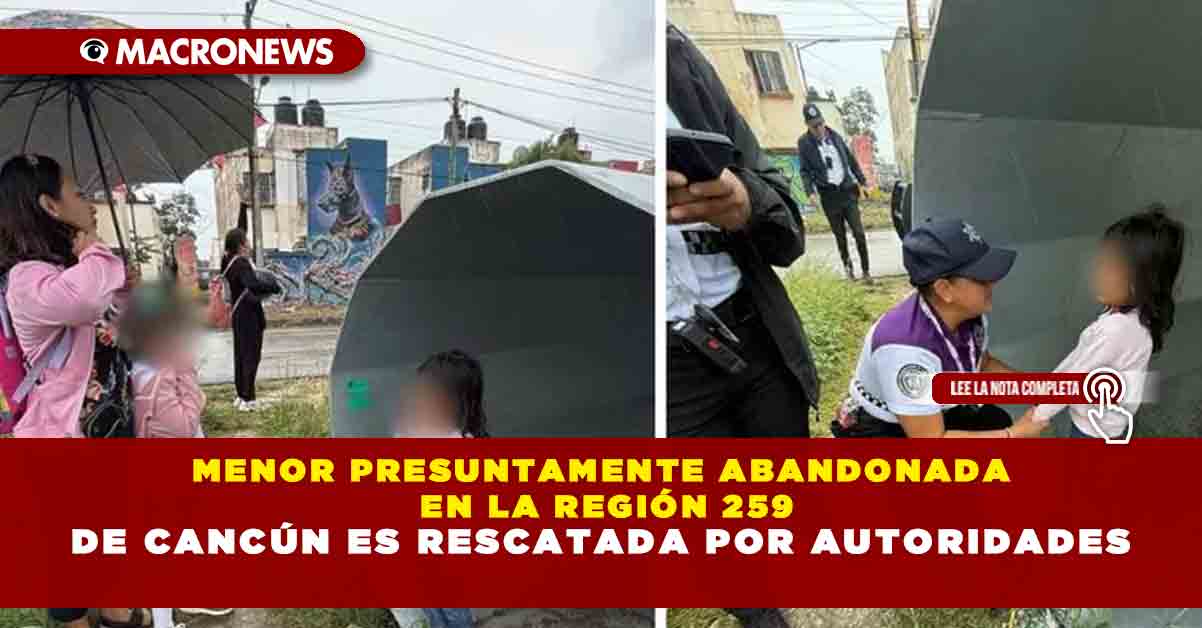 Una intensa movilización policiaca se registró la mañana de este jueves en la Región 259 de Cancún, luego del reporte de una menor presuntamente abandonada en la vía pública. Vecinos alertaron al número de emergencias 9-1-1 al observar a la niña caminando sola bajo la lluvia, lo que activó de inmediato los protocolos de rescate infantil.
