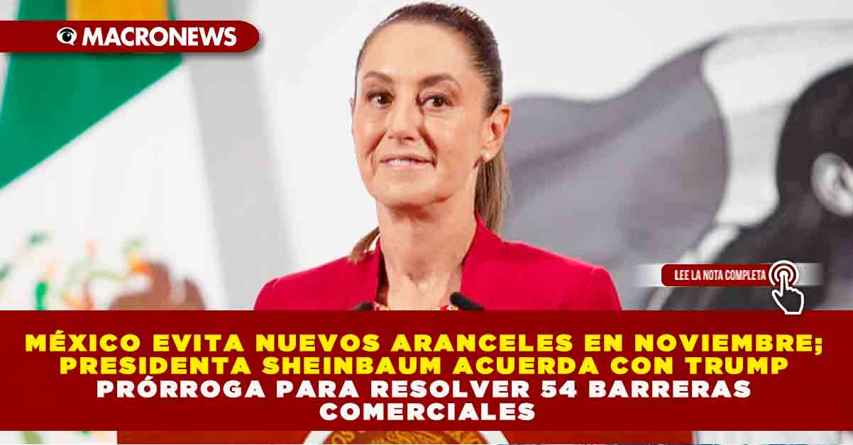 Redacción Macronews.- La presidenta Claudia Sheinbaum descartó la imposición de nuevos aranceles por parte de Estados Unidos el próximo 1 de noviembre, tras una llamada telefónica con el presidente Donald Trump en la que ambos mandatarios acordaron extender unas semanas más el plazo para resolver las 54 barreras no arancelarias pendientes. El diálogo, realizado el sábado pasado, fue calificado como cordial y productivo, y permitió mantener abierta la vía de negociación en temas clave como seguridad, migración y comercio.