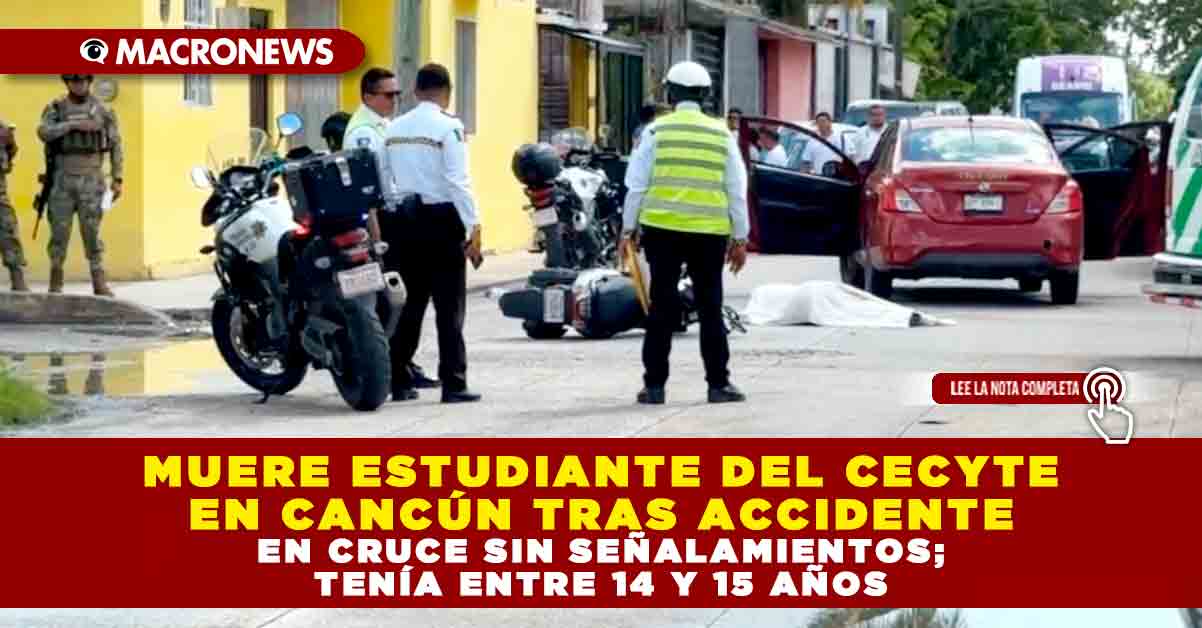 - Muere estudiante del CECyTE en Cancún tras accidente en cruce sin señalamientos; tenía entre 14 y 15 años