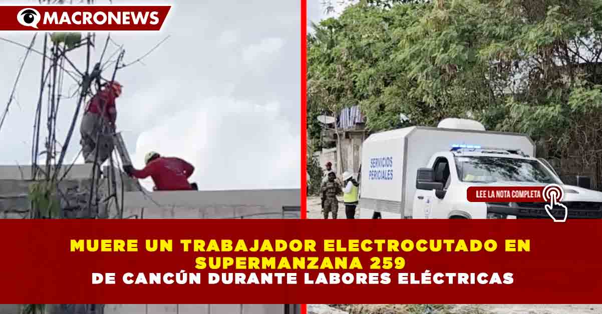 Redacción Macronews.- Un trabajador perdió la vida la tarde de este miércoles 1 de abril de 2026 tras recibir una descarga eléctrica mientras realizaba labores en una vivienda ubicada en la Supermanzana 259 de Cancún.