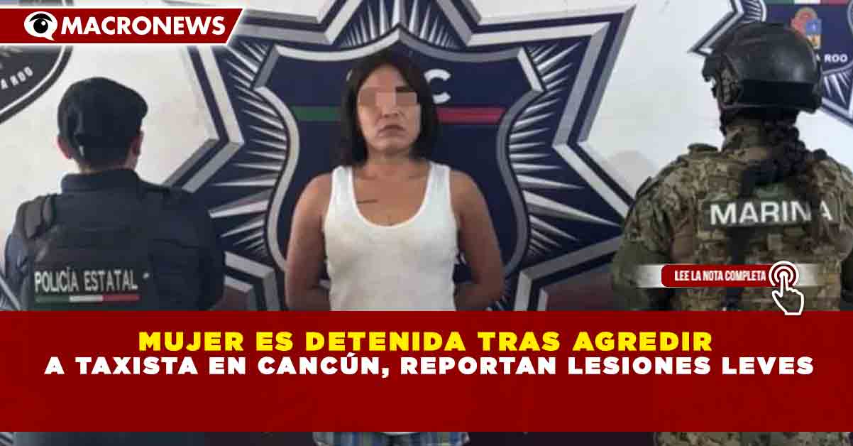 Redacción Macronews.- La Secretaría de Seguridad Ciudadana de Quintana Roo informó la detención de Hainery “N”, presuntamente involucrada en la agresión a un taxista en Benito Juárez, Cancún, la tarde de este viernes. La víctima sufrió lesiones leves en la frente tras ser golpeada con un frasco de vidrio durante un altercado relacionado con el pago del servicio.