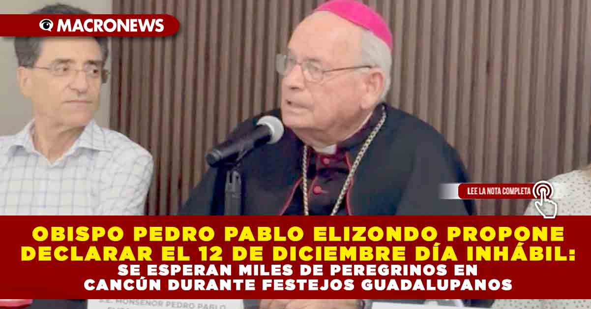 Redacción Macronews.- El obispo de la Diócesis de Cancún-Chetumal, Pedro Pablo Elizondo Cárdenas, lanzó una propuesta a las autoridades estatales y municipales para que el 12 de diciembre sea considerado día inhábil, con el objetivo de facilitar la participación de los fieles en las celebraciones en honor a la Virgen de Guadalupe, una de las festividades religiosas de mayor relevancia en México y Quintana Roo.