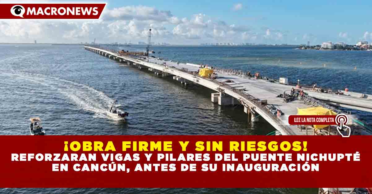 Redacción Macronews.- La Secretaría de Infraestructura, Comunicaciones y Transportes (SICT) anunció que el Puente Vehicular Nichupté, en Cancún, recibirá trabajos adicionales de reforzamiento estructural con el objetivo de asegurar que la obra cumpla con los más altos estándares de seguridad y calidad antes de su inauguración.