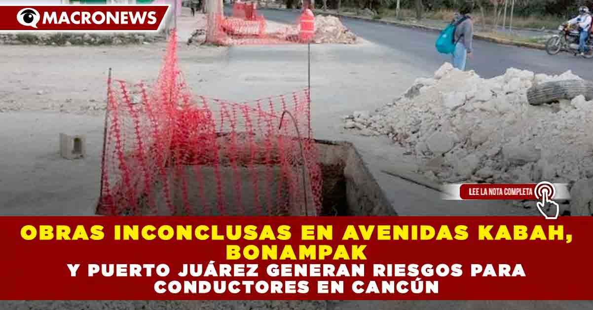 Redacción Macronews.- Ciudadanos de Cancún alertaron sobre obras públicas inconclusas en varias avenidas importantes de la ciudad, donde zanjas abiertas, registros sin terminar y escombros representan un riesgo para automovilistas y motociclistas.