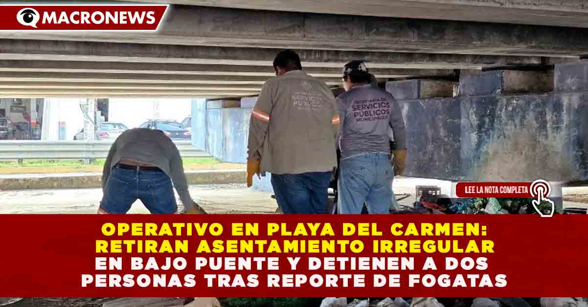 OPERATIVO EN PLAYA DEL CARMEN: RETIRAN ASENTAMIENTO IRREGULAR EN BAJO PUENTE Y DETIENEN A DOS PERSONAS TRAS REPORTE DE FOGATAS