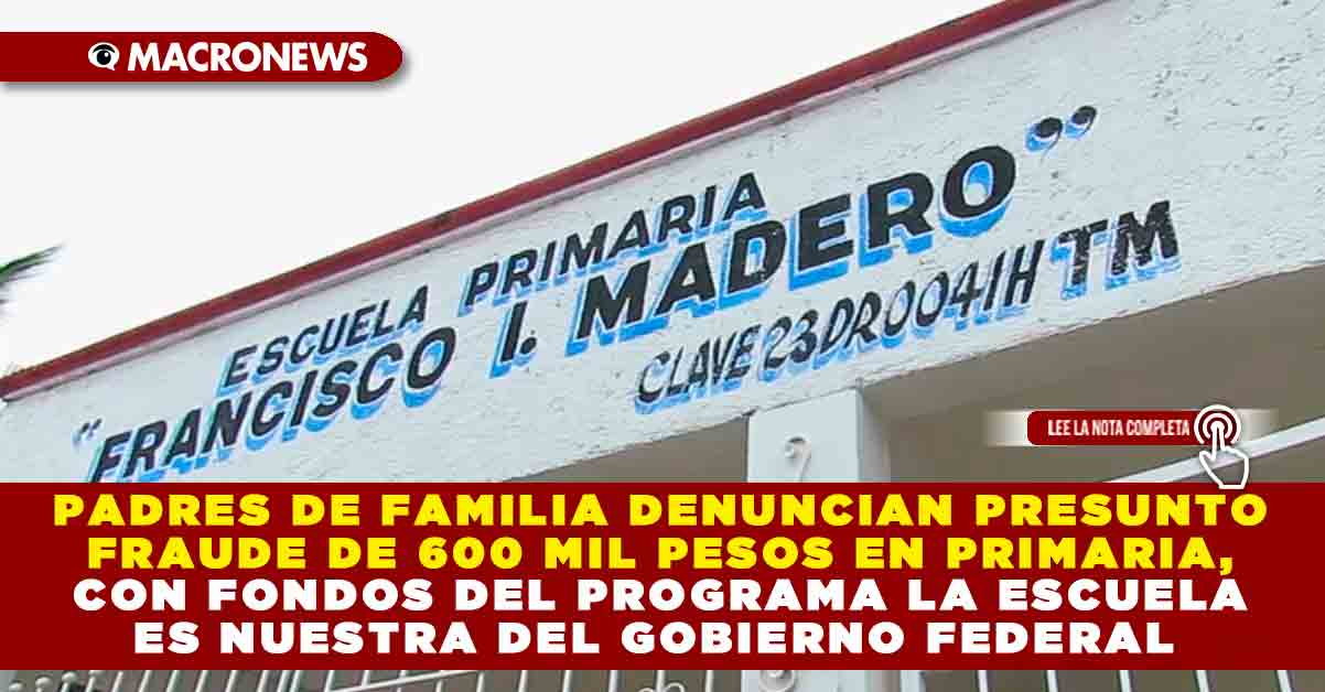 REDACCIÓN MACRONEWS POR FLORA CRUZ. — El programa LEN (La Escuela es Nuestra) cometió un fraude de alrededor de 600 mil pesos con dinero otorgado por el gobierno federal para la mejora del plantel de la escuela primaria “Francisco I. Madero”, ubicada en la supermanzana 58.