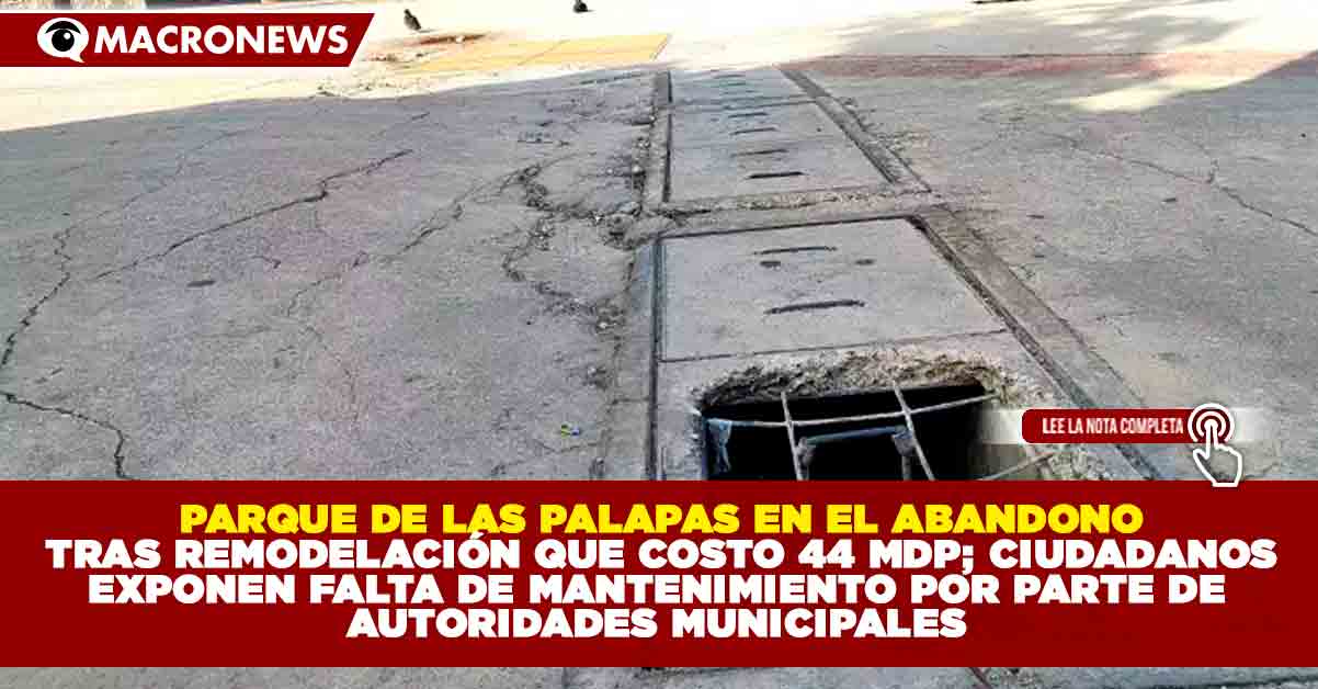 Redacción Macronews.- A tan solo 12 meses de su reinauguración y después de una inversión pública de 44 millones de pesos, el Parque de las Palapas en Cancún luce deteriorado y en condiciones que evidencian la falta de mantenimiento por parte del Ayuntamiento de Benito Juárez. Lo que debía ser un espacio emblemático y seguro para familias y turistas, hoy muestra basura acumulada, coladeras sin tapa, grietas en el pavimento y cableado expuesto que representa un riesgo constante de accidentes y cortocircuitos.