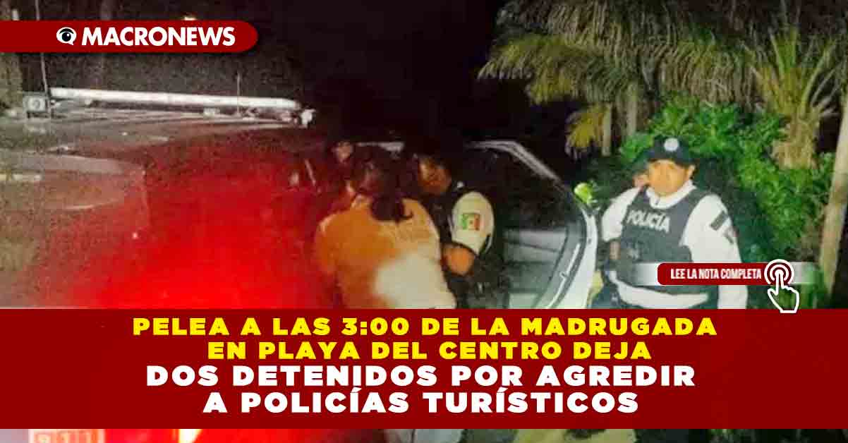 Redacción Macronews.- Un hombre y una mujer fueron detenidos durante la madrugada en la orilla de la playa de la colonia Centro, luego de protagonizar una pelea que derivó en agresiones físicas y verbales contra elementos de la Policía Turística, quienes acudieron al sitio tras escuchar gritos de auxilio alrededor de las 3:00 de la mañana.