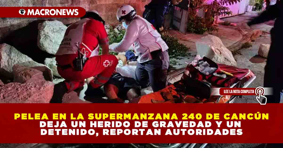 Cancún, Q. Roo.— Una riña entre varios hombres en la Supermanzana 240 dejó como saldo a una persona gravemente herida y un detenido, lo que movilizó a cuerpos de emergencia y seguridad la noche de este domingo.