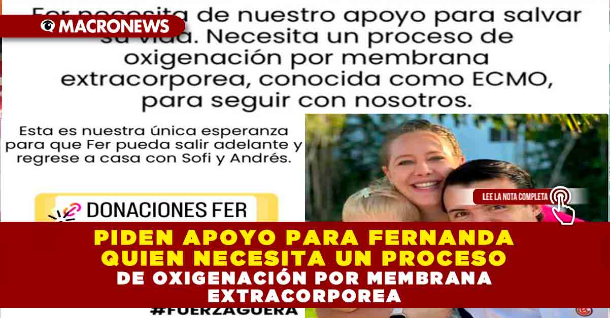 REDACCIÓN MACRONEWS POR DARSET RIVERO.- A través del sitio https://donadora.org/campanas/fer-luchando, el esposo de Fernanda está pidiendo apoyo porque Fer necesita un proceso de oxigenación por membrana extracorpórea, conocida como ECMO.