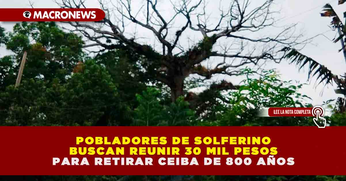 Pobladores de Solferino buscan reunir 30 mil pesos para retirar ceiba de 800 años que representa riesgo en temporada de huracanes