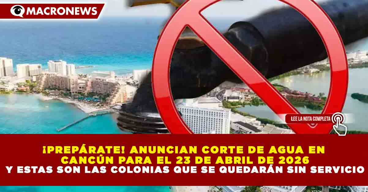 Redacción Macronews.- La empresa Aguakan anunció un corte de agua programado para este jueves 23 de abril de 2026 en Cancún, derivado de trabajos de interconexión en una línea de 24 pulgadas, lo que afectará a diversas zonas de la ciudad con baja presión o suspensión temporal del servicio.