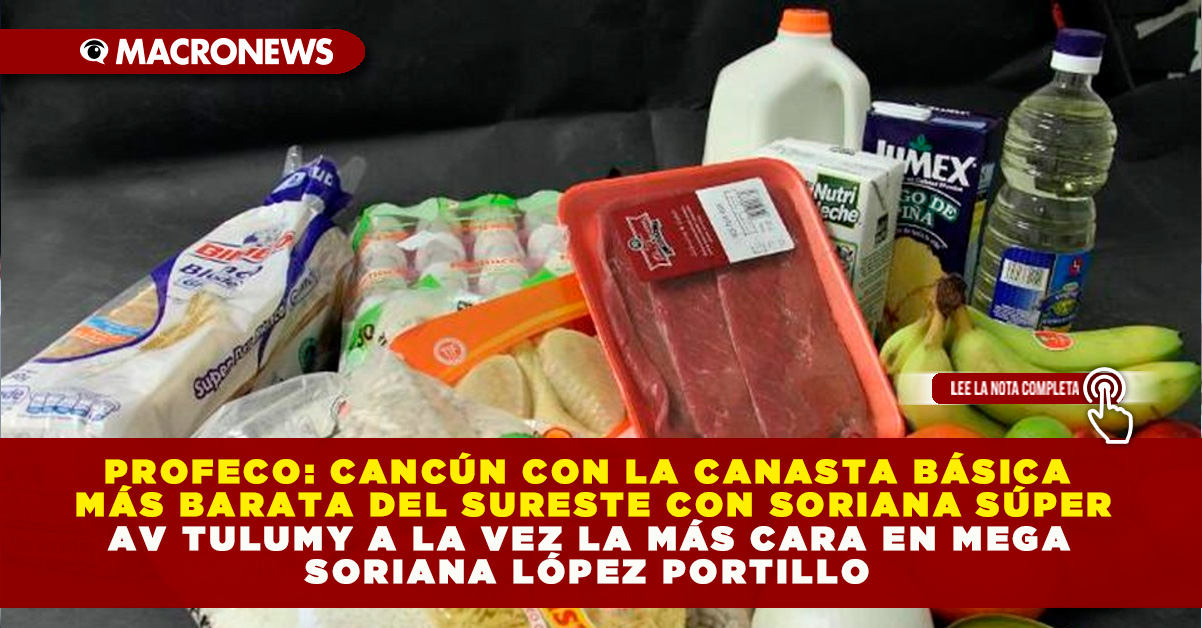 David Aguilar Romero, titular de la Procuraduría Federal del Consumidor (Profeco) Federal, hizo público en Palacio Nacional que en la venta de productos de la canasta básica, un supermercado en Cancún, Quintana Roo, tuvo el cuarto precio más alto a nivel Sureste de México.