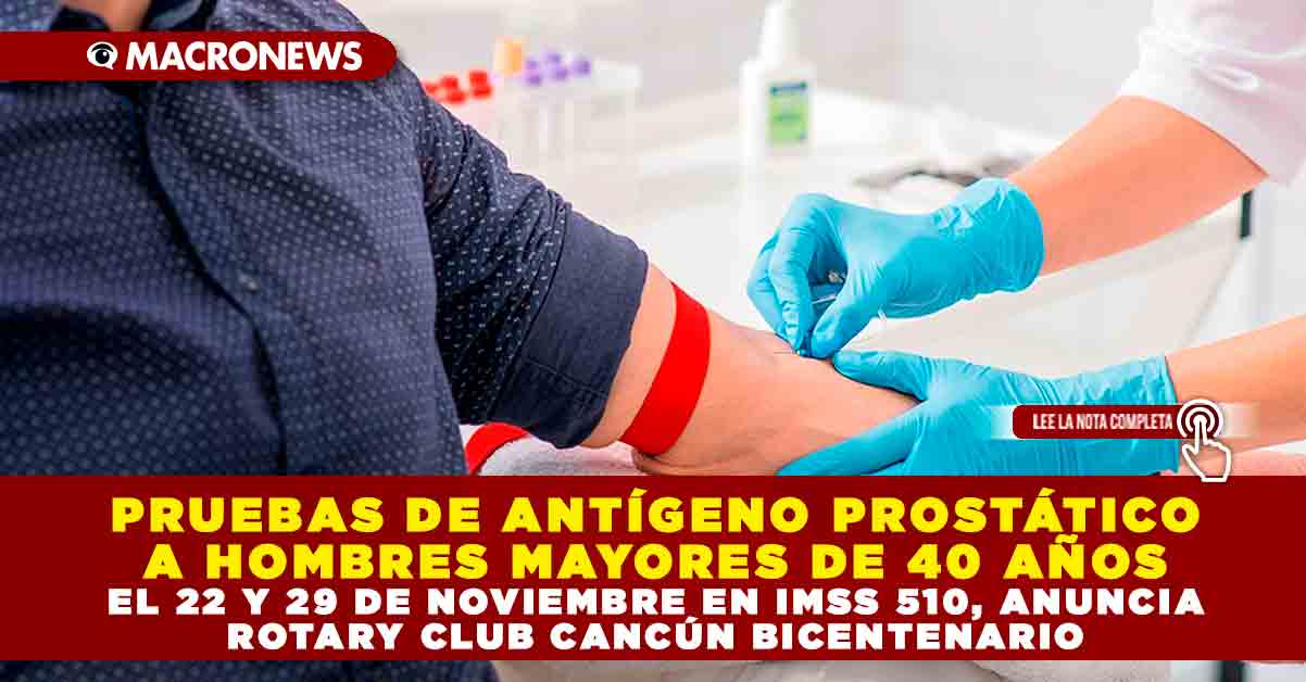 PRUEBAS DE ANTÍGENO PROSTÁTICO A HOMBRES MAYORES DE 40 AÑOS EL 22 Y 29 DE NOVIEMBRE EN IMSS 510, ANUNCIA ROTARY CLUB CANCÚN BICENTENARIO