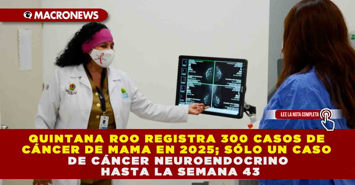 Redacción Macronews.- El Boletín del Sistema Nacional de Vigilancia Epidemiológica reportó que, hasta la semana 43 de 2025, Quintana Roo ha registrado 300 nuevos casos de cáncer de mama, lo que representa un incremento de entre 25% y 30% respecto a los 197 casos contabilizados en 2024. En contraste, sólo un caso de cáncer neuroendocrino o de páncreas ha sido confirmado en el estado durante el mismo periodo, evidenciando la baja incidencia pero alta complejidad de esta enfermedad.