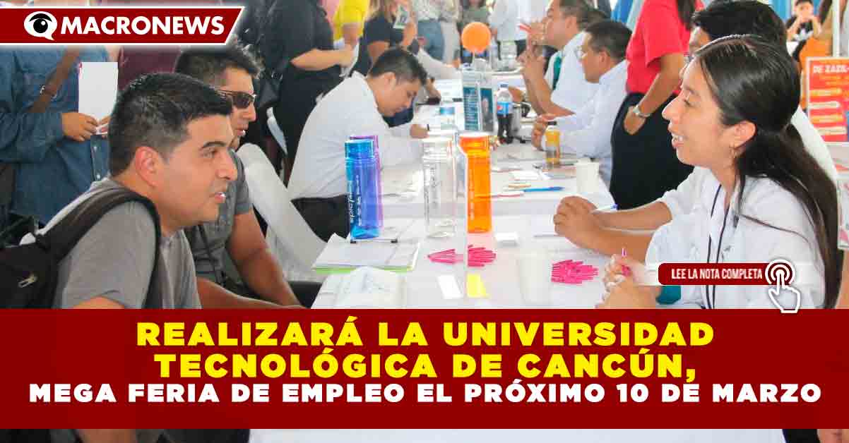 Redacción Macronews por Renán Moguel.- Carlos Magaña Peraza, jefe de la Oficina de Gestión Empresarial de la Universidad Tecnológica de Cancún, dio a conocer que el próximo 10 de marzo se llevará a cabo una Mega Feria del Empleo en las instalaciones del plantel, donde se ofertarán más de 1,200 vacantes.