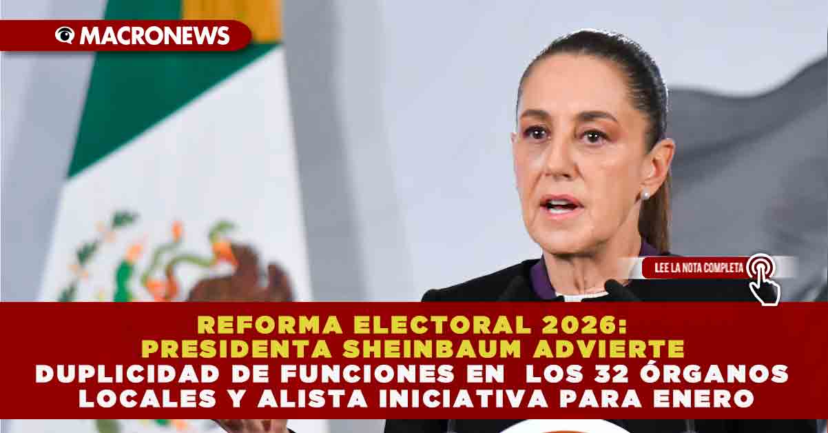 REFORMA ELECTORAL 2026: SHEINBAUM ADVIERTE DUPLICIDAD DE FUNCIONES EN LOS 32 ÓRGANOS LOCALES Y ALISTA INICIATIVA PARA ENERO