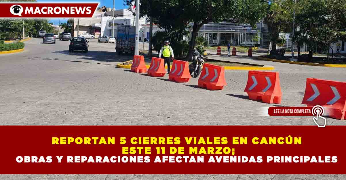 Redacción Macronews.- Autoridades informaron que al menos 5 puntos de Cancún presentan cierres parciales y restricciones viales este miércoles 11 de marzo de 2026, debido a trabajos de reparación y obras en diferentes avenidas de la ciudad, lo que podría generar tráfico y retrasos para automovilistas.