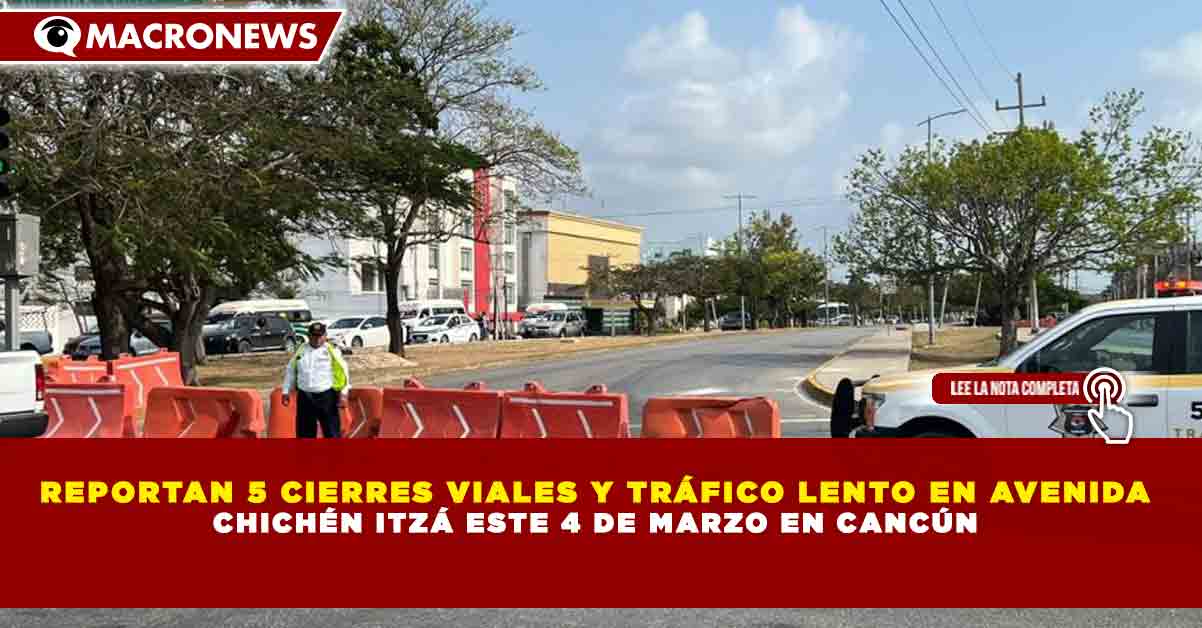 Redacción Macronews.- Diversos puntos de Cancún presentan cierres parciales y afectaciones viales este martes 4 de marzo de 2026 debido a trabajos de reparación y obras en la vía pública, lo que ha generado tráfico lento en algunas de las principales avenidas de la ciudad.